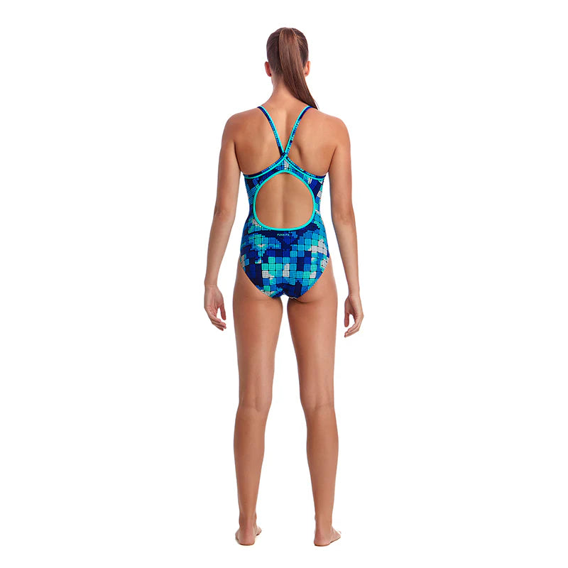 Der Diamond Back ist der klassische Trainingsbadeanzug von Funkita für Damen. Das Model hat verstärkte Träger, einen verkleinerten Rückenausschnitt und das Bein ist normal hoch geschnitten, für deine perfekte Trainingseinheit im Wasser. Damit auch nichts rausblitz hat der Badeanzug ein zusätzliches Futter im Frontbereich.
