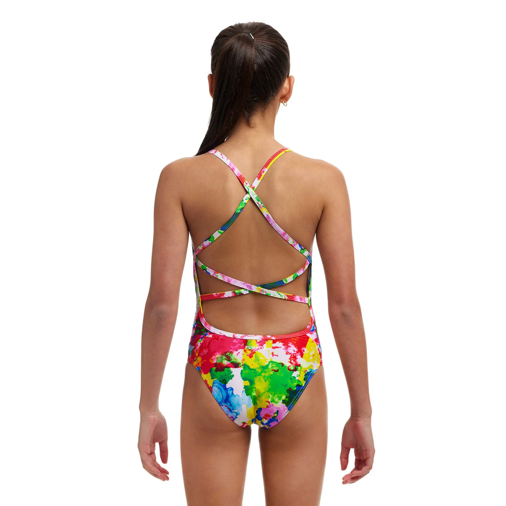 Mit dem Funkita Mädchen Trainingsbadeanzug Strapped In kannst du deinen Rücken gekonnt in Scene setzten. Die schmalen Träger laufen im Zick Zack über deinen Rücken und der Beinausschnitt ist extra hoch, damit du die größtmögliche Bewegungsfreiheit hast. Damit vorne nicht rausblitzen kann hat der Badeanzug ein Innenfutter im Frontbereich.
