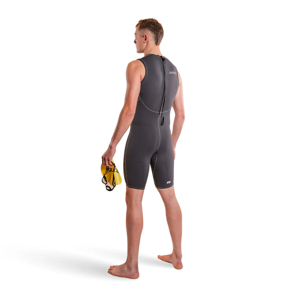 Ein mittiger Reißverschluss am Rücken mit langem Zugband ermöglicht bequemes An- und Ausziehen vor und nach dem Gebrauch. Der knielange, ärmellose Schnitt bietet ein ausgewogenes Verhältnis von Schutz und uneingeschränkter Bewegungsfreiheit des Oberkörpers und macht den Anzug somit für verschiedene Wasserbedingungen und Aktivitäten geeignet.
